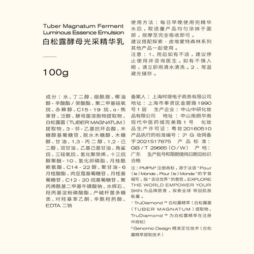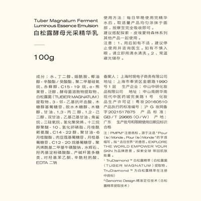 含有白松露成分,可提亮肤色,使用起来清爽十足,让肌肤具有很强的水润度。抵御氧化能力强,一抹奶滑好吸收。