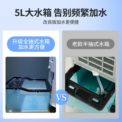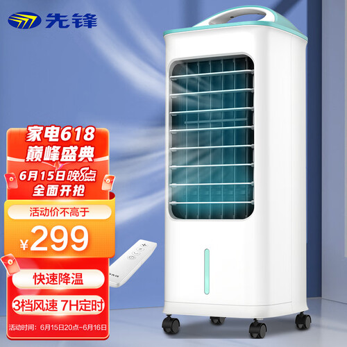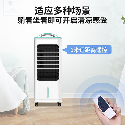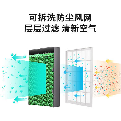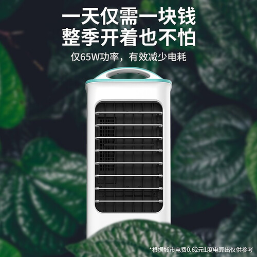 风扇内置植物纤维绿色冰帘,吸水多,降温快。贯流的风轮,实现了更大范围的送风,105片的扇叶,出风柔顺,体感好。