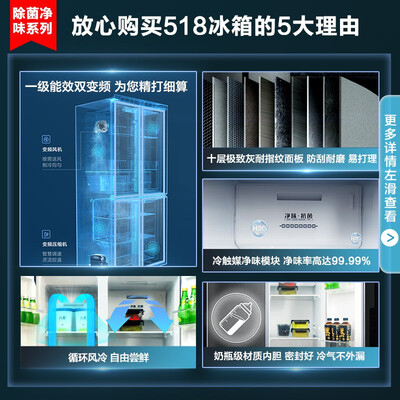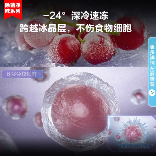 内置冷触媒净味模块,能够高效净化细菌和异味,让食材保鲜更健康。采用第四代风循环技术,更好的保留食材营养成分不流失。