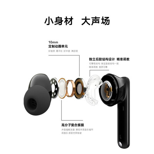 提供多种不同尺寸的硅胶耳塞选择,根据自身需求选择,设计更显得人性化。轻盈的机身构造,提升佩戴舒适感,久戴也不累耳。