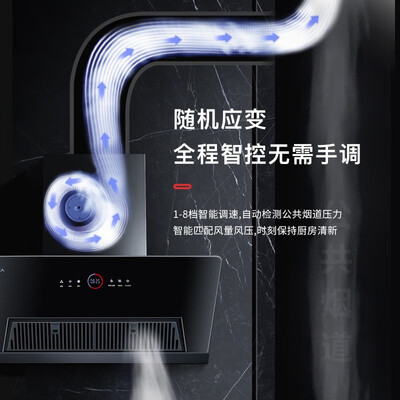 采用变频巡航免手调技术,吸力可随机应变,时刻保持厨房洁净清新。搭载直流变频芯,有着硬核的实力,释放澎湃风压。