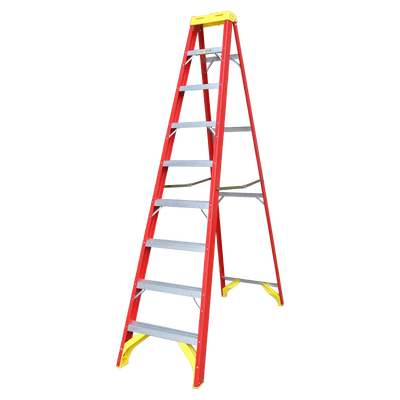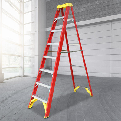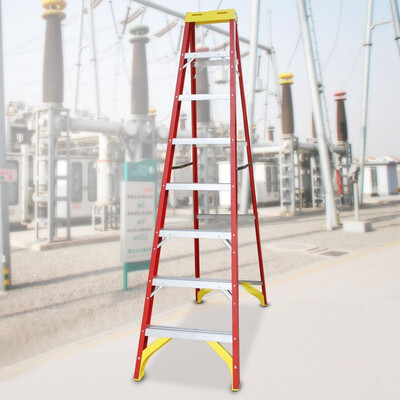 顶部带有工具盒,方便摆放工具,减少频繁上下楼梯取工具,提高工作效率。一体成型的斜撑和胶套,电工作业时安全绝缘。