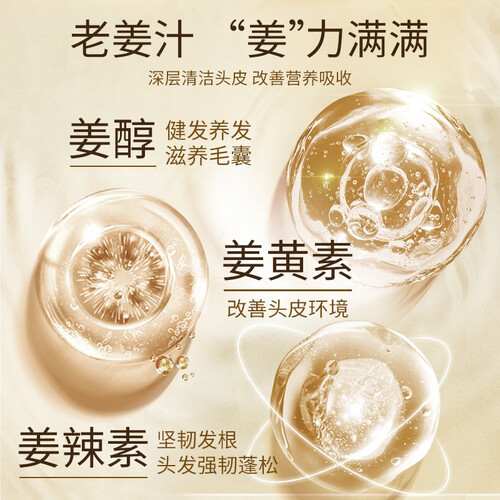 提取老姜汁成分,固发密发,乌黑滋养,持久散发亮泽。散发草本芳香气味,更加清新好闻,能够提升护发体验。