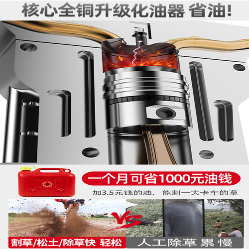 此款割草机采用轻量化设计,不另外增加负担,长时间作业更轻松,配以GT化油器,具有供油稳定的特点,不易出现熄火现象。