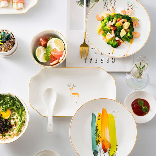 每一只碗碟的边缘都进行了精致的纯手工描边,手绘的感觉独特又别致,为餐具增添了不少档次,看起来非常美观。