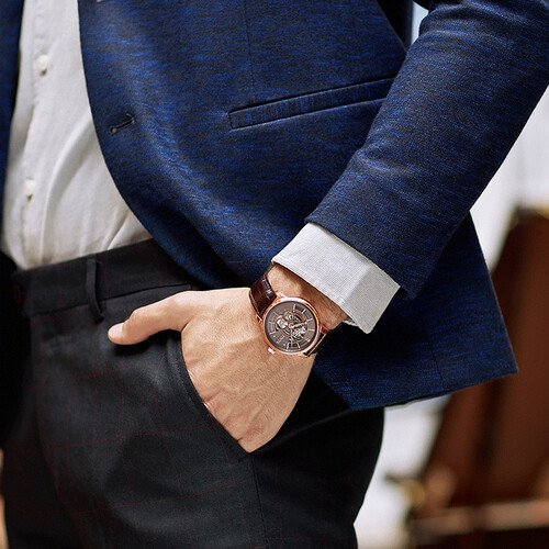 多层次创意镂空盘面,感受机芯在其中若隐若现运行,散发别样魅力。搭配不锈钢按制皮带扣,经久耐用不易腐蚀。