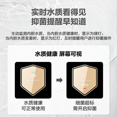 主动水质监测功能,红绿灯智能提醒,配合巴氏高温科技,可轻松杀死水质微生物,呵护家人孩子身体健康,防止皮肤过敏。
