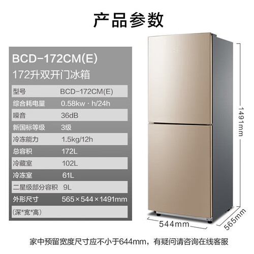 机身精致小巧,节省占地面积,安放方便更省心。采用双门双温设计,冷藏冷冻都可实现,满足不同场景的储鲜需求。