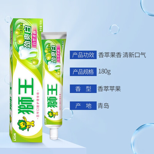 添加薄荷香味,用后能长时间保持口腔清新,能洁净牙齿,去除牙齿缝隙的食物残渣、牙菌斑、牙垢等,守护牙齿健康。