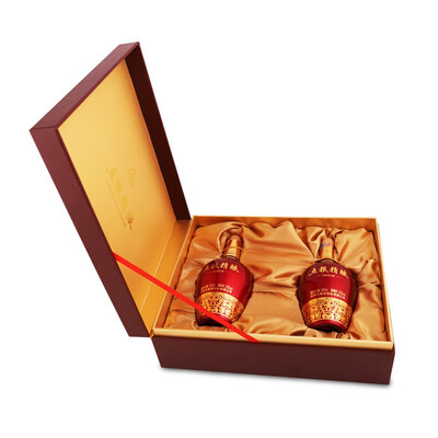 这款白酒礼盒是皮质的,上面还有古典风韵的浮雕,看起来非常的古朴大气。酒瓶是红釉的,看起来很奢华。
