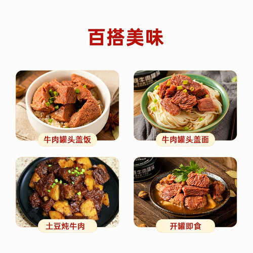 富含大块瘦肉,鲜嫩多汁,大口吃肉更过瘾,老人小孩都爱吃。采用优质马口铁罐装,外出携带更方便,野营出行好伴侣。