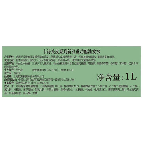 蕴含双重配方制作而成,控制头发油脂的分泌情况,滋养头皮内部。搭配甘氨酸成分,净化头皮头屑,快速进行清洁。