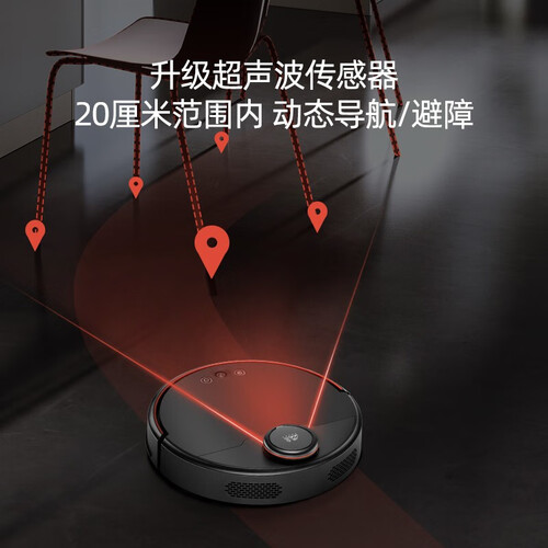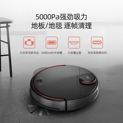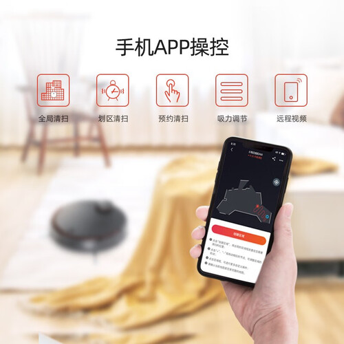 浮动拖布的设计,可以根据地形进行变换,适用于多种地面;全景摄像头,可以根据家庭情况进行实时监控,功能强大。