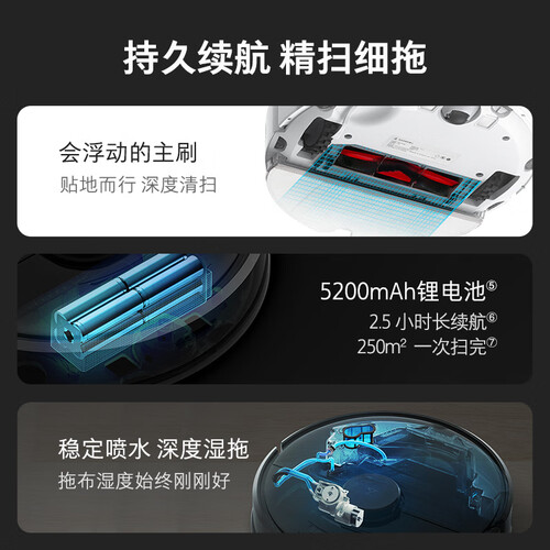 配备恒压电控水箱,出水准确流畅,不易漏水使用更加安全。双向浮动主刷,贴着地面运行,实现深度清理。