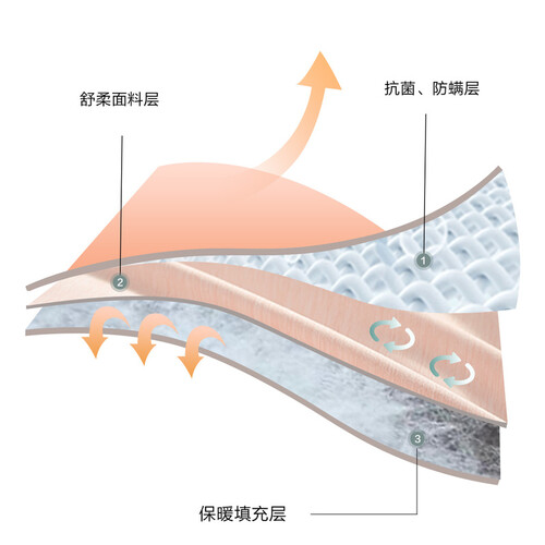 面料经过防螨工艺处理,赋予其出色的防螨效果,让全家人免受螨虫困扰,享受优质睡眠。回弹性好,久用也蓬松。