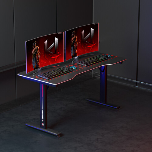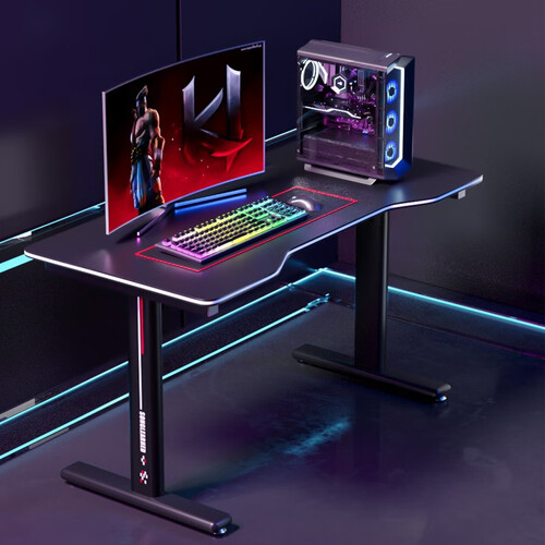 弧面设计的电脑桌,符合人体工学原理,线条流畅利落,可自然贴合腹部曲线,久坐不会顶肚子,游戏体验更佳。