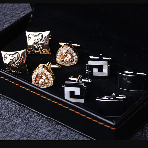 礼盒包装的袖扣,日常收纳方便,防尘防灰,同时送人也有面子。圆形与方形,满足日常多种佩戴所需,突出您的气质。