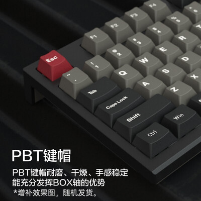 精选原厂高度的PBT键帽,触感舒适,经久耐用不褪色。采用凯华BOX白轴设计,即使长久使用也能稳定如一。