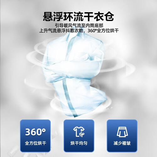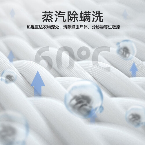 悬浮环流干衣仓,上升气流抖散衣物,全面无死角烘干。蒸汽除螨洗,热温覆盖全部衣物,清洁更彻底,全力保护皮肤健康。