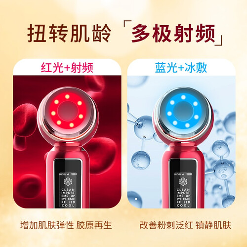 冰敷按摩舒缓,快速收缩毛孔,改善粗糙、红血丝等。不锈钢的按摩导头,细腻柔软温和,各类敏感肌都可放心使用。