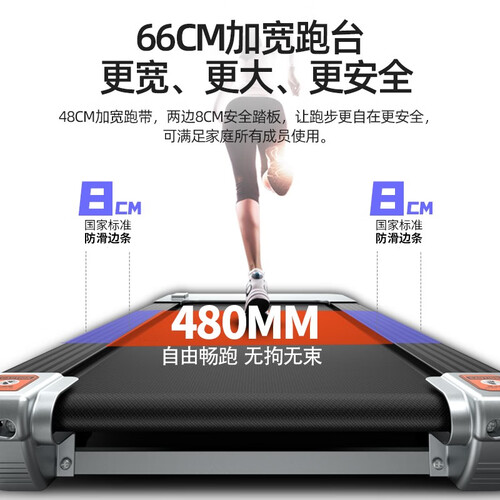 悬浮减震的悬空式跑台设计,有效吸收冲击力,跑步护膝更加安全。结合七层高弹软跑板设计,防滑耐磨更耐用,动态护足更安心。