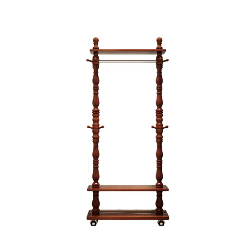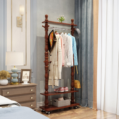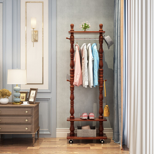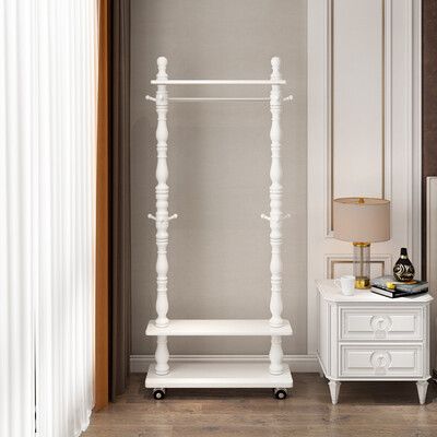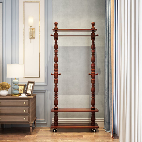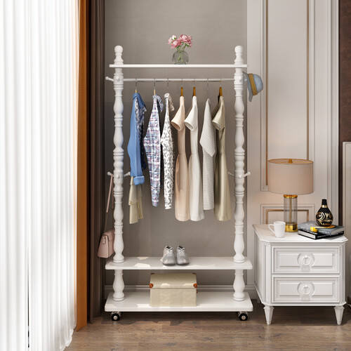 采用多层挂钩错位设计,可挂更多衣物,大大增加储物空间。移动脚轮设计,滑轮既可移动也可固定。