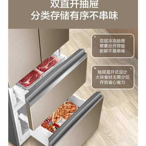 智能控风设计,有效节省电量消耗,节能效果肉眼可见。双直开抽屉,食材存储更方便,有效避免食材串味。