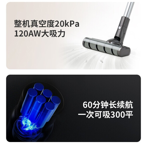 搭载高性能无刷数码电机,每分钟转速达到10万转,能够轻松吸收大颗粒垃圾。配备多种刷头,拆装便利,使用灵活方便。