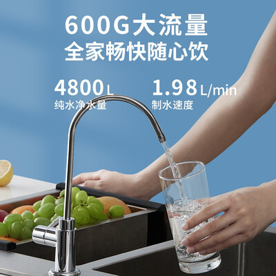 600G大通量,出水迅速无需久等,4800升总净水量,轻松满足家庭日常净水需求。搭载智能滤芯冲洗,延长使用寿命避免堵塞。