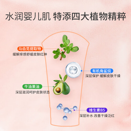 零添加有害成分,带来温和呵护,帮助肌肤恢复保护力,改善宝宝脆弱皮肤。经过国家权威机构检测,品质更有保障。