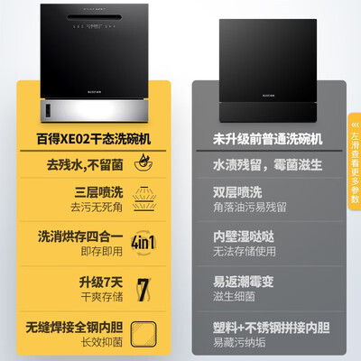 采用双泵定期巡航残水技术,能排尽余水,告别底槽积水,有效抑制返潮。无缝焊接全钢内胆,7天干爽鲜存储。