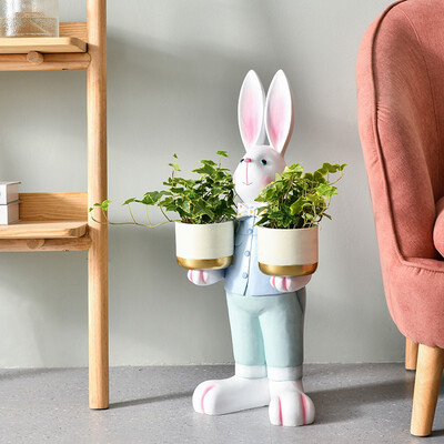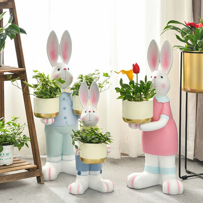 精选优质树脂材质,通过手工彩绘,色泽饱满不易褪色。可爱兔子手中设有花盆点缀,可以种小绿植,减少沉闷陶冶心情。