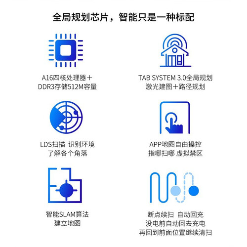 经典的纯黑色机身更显稳重,搭配纤薄的厚度,低矮角轻松应对。拥有断电续扫功能,表面重复清扫,智能更节能。
