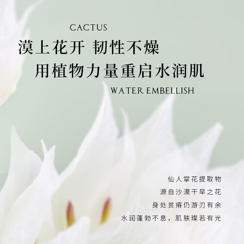 内含仙人掌花成分,让肌肤水润白皙透亮。上层是8%精粹油,强韧皮脂膜,不再受伤害。下层是92%精华水,使肌肤透润满水光。