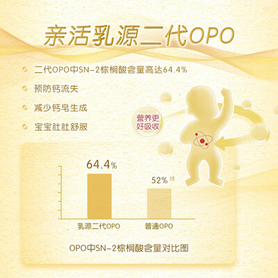 内含乳源二代OPO结构脂,亲和好吸收,让宝宝肠胃更舒适。含有四倍活性益生菌成分,有助于肠胃蠕动,消化吸收更好。