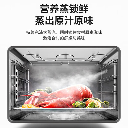 蒸箱拥有持续并且充沛的大蒸汽,可以瞬间锁留食材本味,尽享鲜美。采用电动翻板式吸口,油烟不残留。