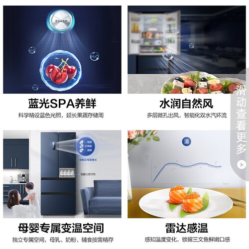 全空间净化技术,抗渍除异味,打造多维度健康食材空间。双制冷双循环的设计方式,互不干扰,食材不会串味。