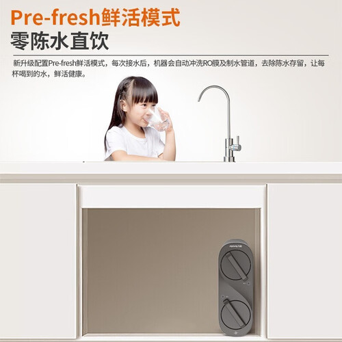 搭载Pre-fresh鲜活模式,每次接水后机器自动冲洗RO膜和制水管道,避免陈水残留,每一杯水都能鲜活畅饮。