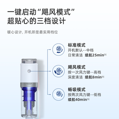 龙卷旋风尘气分离术,吸力持久不衰减,有效避免灰尘二次污染。电池可更换,带来更持久的续航力,大户型放心使用。