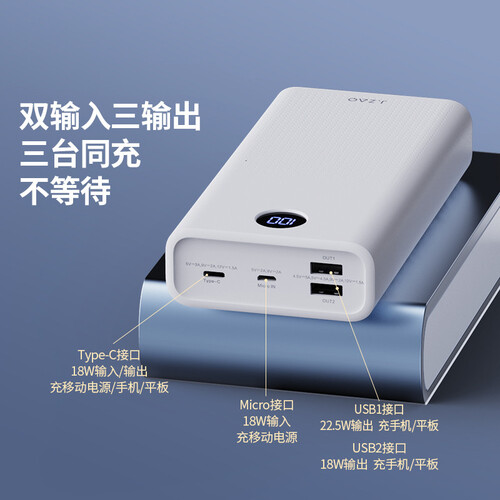 内置高品质聚合物电芯,充放电功率经过优化,带来更高的转化率。设有30000毫安电容量,可为手机充电多次,续航无忧。