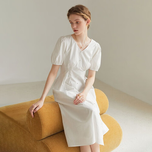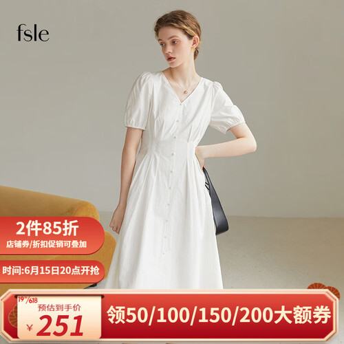 范思蓝恩 法式V领连衣裙