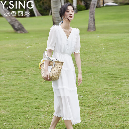裙子采用泡泡雪纺纱面料,手感柔软舒适,亲肤不扎人。透气性好,夏天穿着不闷热。裙子选用松紧高腰线设计,能很好地遮肉,穿着显高显瘦。