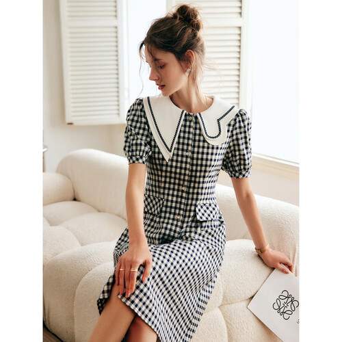 使用混亮织格纹面料挺括垂顺,洁净平整。进一步提升衣服品质美感。手感柔软舒适,抗皱性好,日常易打理。撞白色不对称翻领,更精至耐看。