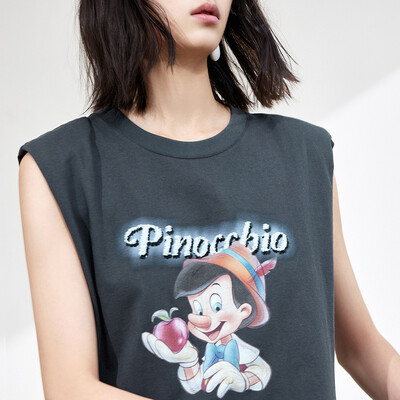 简约易搭的套头无袖连衣裙,胸前的卡通印花图案,尽显时尚潮流个性。整体宽松的版型设计,拥有较好的包容性,上身自如更显随性。