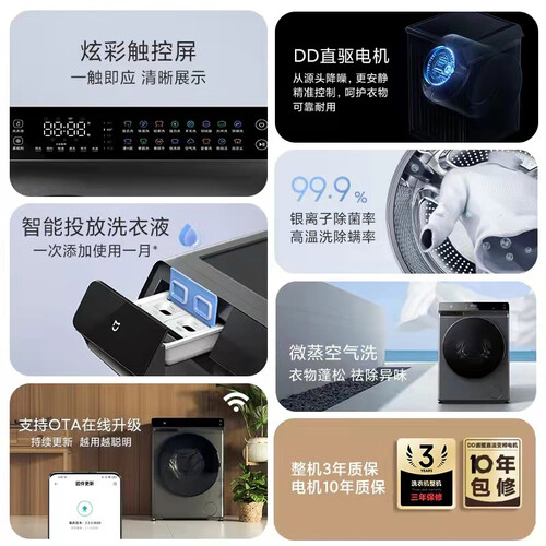 智能双路投放系统,自动感知衣物重量,高效配比洗涤剂与柔顺剂,不过量不浪费。全新升级的全彩屏操控,界面清晰,老人也可轻松使用。