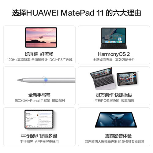采用120Hz高刷全面屏,带来丝滑操作和沉浸体验。为平板量身打造的HarmonyOS 2操作系统,全新桌面布局给你灵活的交互体验。