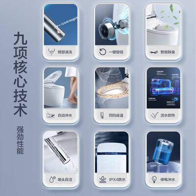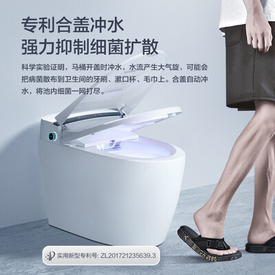 专利合盖冲水,静音减噪,同时还能抑制马桶内的细菌扩散。简化按键操作,一键自动旋钮就可完成多种功能。还有显示屏实时显示马桶使用状态。