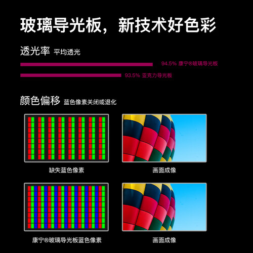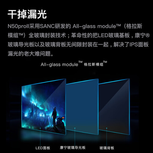 采用全玻璃封装技术,能够避免出现漏光的问题。超高清画质,在家就能够轻松看大片。航空级铝材质封边,细节处理到位。