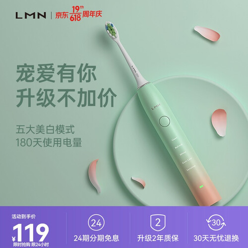 具有5种不同强度刷牙模式,根据早晚牙齿清洁程度选择,改善口腔健康。U型刷头设计,更好贴合牙齿表面,带来全面无死角的清洁效果。