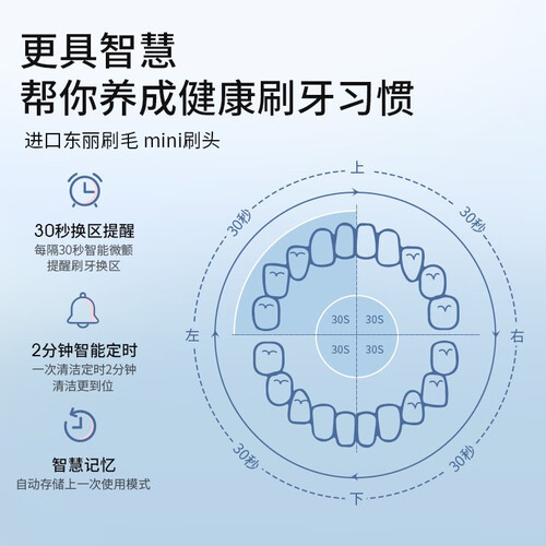 配备多种刷头解决不同口腔问题,有效清洁牙齿污渍。智能感应,精准控压,防止使用不当力度带来的口腔损伤。3种清洁模式,呵护口腔洁净。